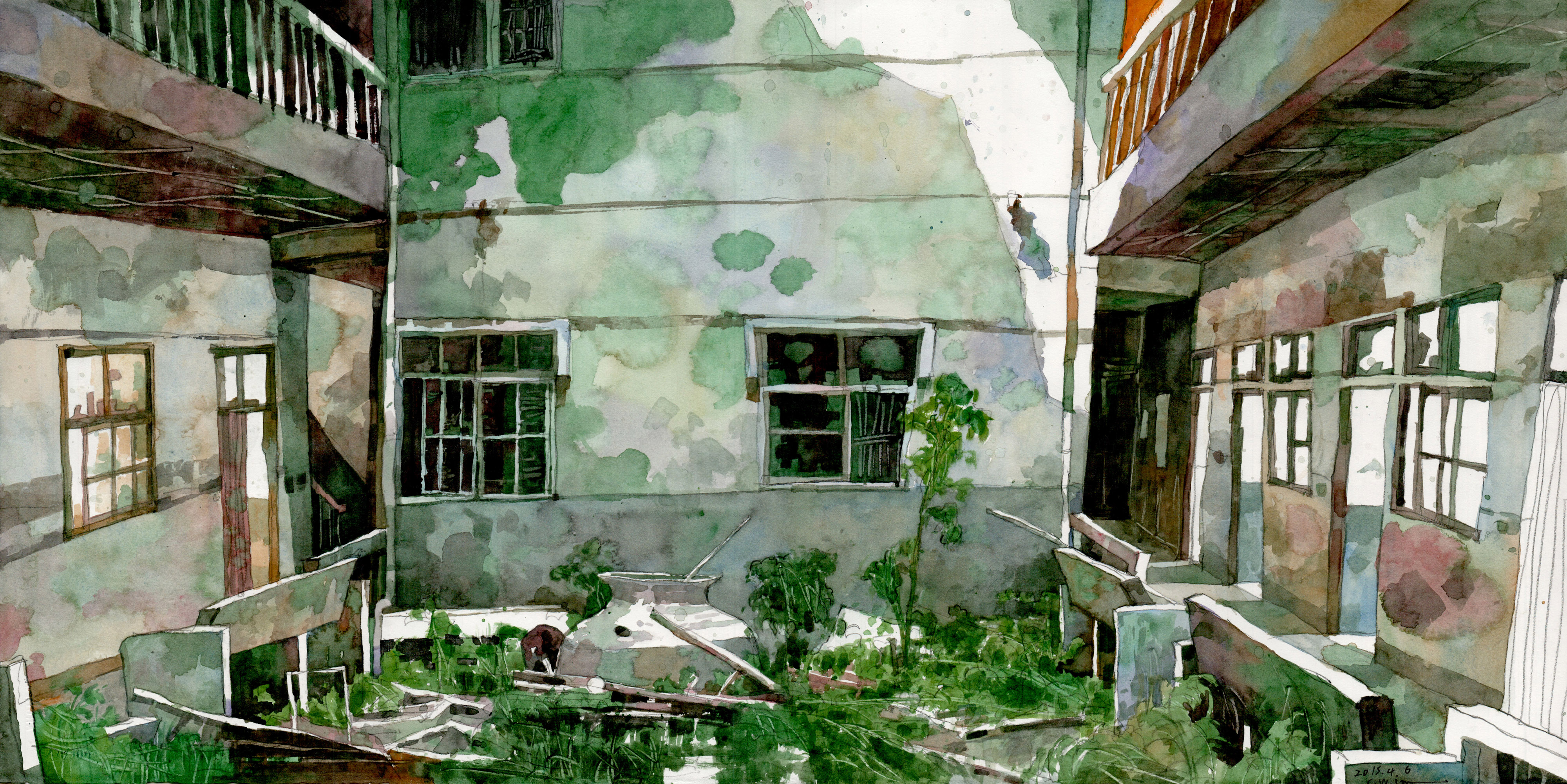 站在充滿綠意、宛如人類消失的廢屋中庭,輕輕閉上眼睛,仍然可以聽到西門路上往來車輛所產生的微弱噪音。這裡真像城市沙漠裡的綠洲,我這樣想著。