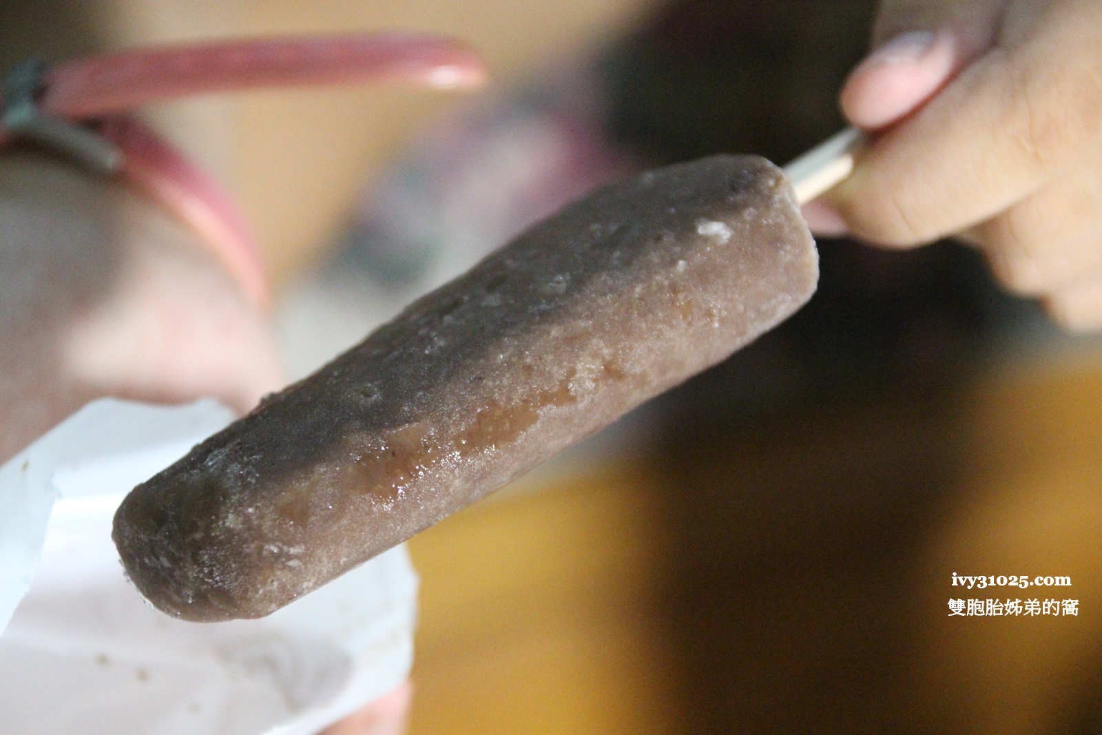 撕開Acai-Black巴西莓冰沙冰棒的包裝袋,拿出冰棒,是有點深褐色。