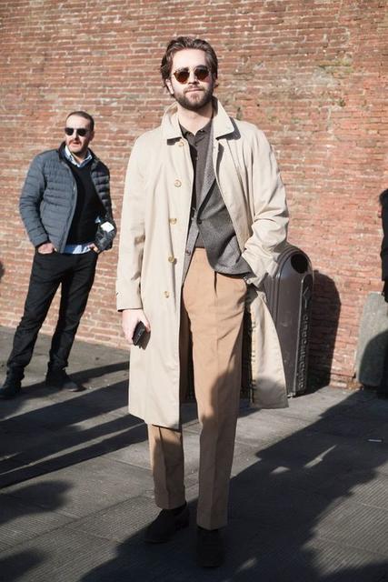 ▲ 以卡其色風衣為日常造型提升氣勢度 Photo Source