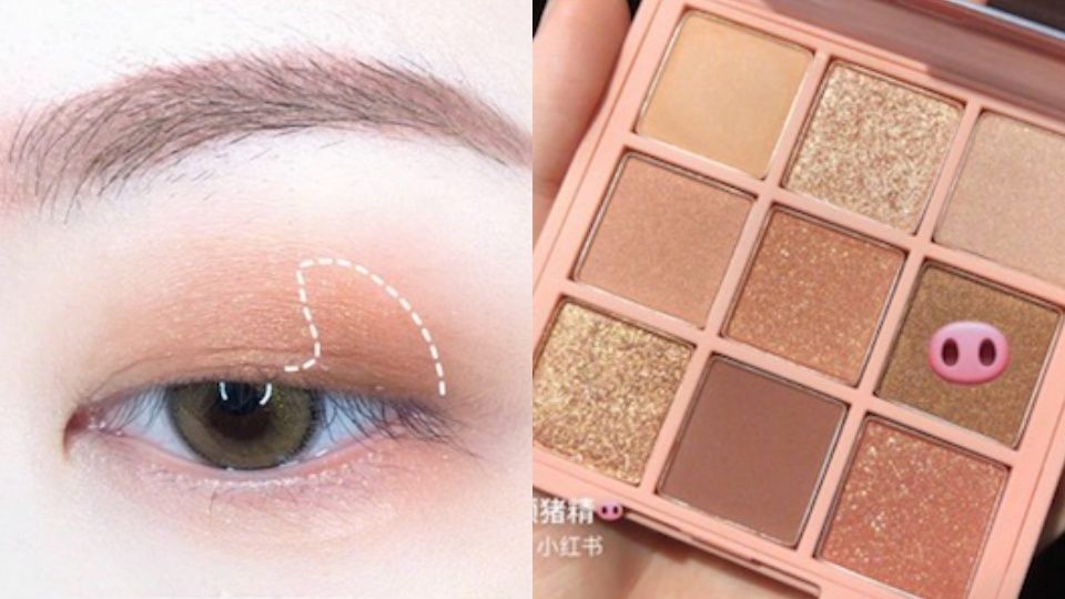 接下來使用珠光咖啡色,在上眼皮的眼尾眼窩處暈染,讓咖啡色和蜜桃珠光色融合後,妝容會更有重點,眼睛也看起來比較深邃,但卻不失韓妞、日妞愛的清透感!