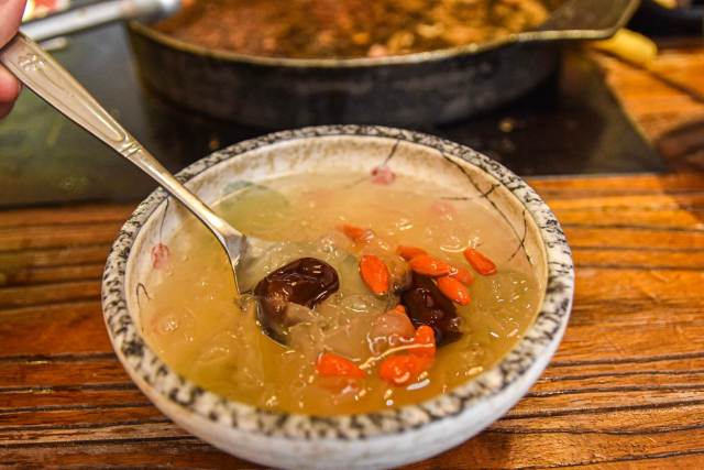 現在於FB, Google評論推薦,就送甜點二選一-桂圓紅棗銀耳&宇治金時抹茶冰淇淋,但我們實在是吃的太飽了,所以只吃了桂圓紅棗銀耳,不會太甜,冰冰涼涼的很去暑解膩!