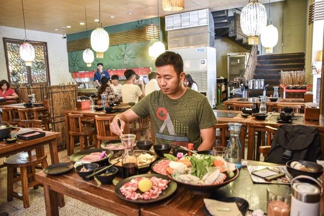 《八豆食府壽喜燒》以中式混合日式的建築裝潢風格為特色,餐廳內播放著日本輕快的歌曲,還以為置身在日本吃壽喜燒呢!
