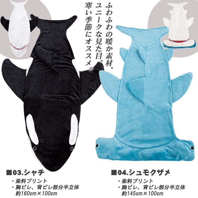 鯨鯊是不少人從小就喜歡的動物,藍底白點的鯨鯊毯造型復古可愛,送給女生朋友也會大受好評的!另一款則是常見的鯊魚,有種一排尖銳的白牙齒,看起來更具攻擊性,把腳放進去保暖的視覺效果趣味性十足!鯨鯊為140cm,鯊魚則是170cm,想購入的讀者記得要先量好腿長唷!