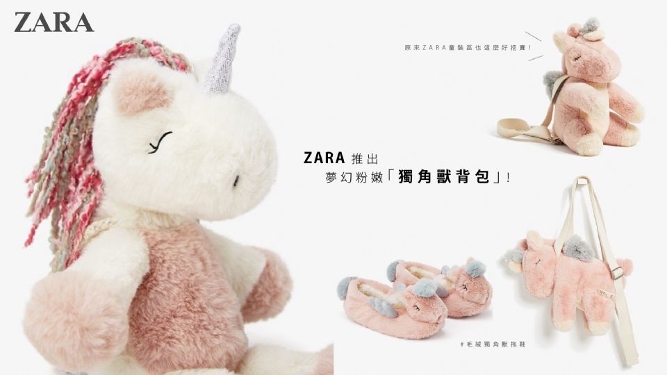原來ZARA童裝區有這麼多好物可以挖!以後朋友生小孩或是過年過節送禮就不用再煩惱了!不僅實用又可愛,比起購買玩具,送包包、拖鞋等價格真的合理很多,但如果小編去選購的話,看到這麼可愛又少女的獨角獸,應該會不自覺被吸引,然後完全忘記要送禮的事情,直接送給自己吧!(笑)