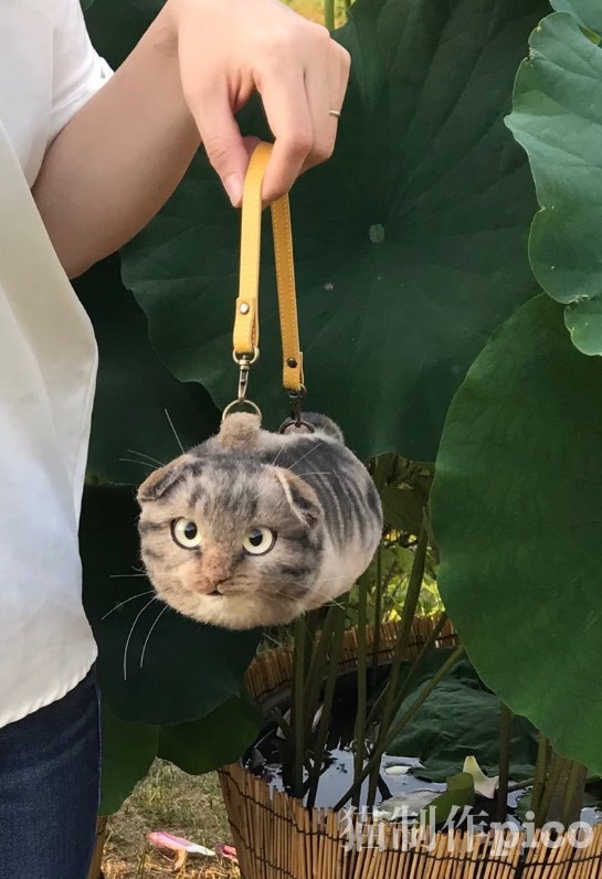 來自日本福井縣的家庭主婦兼設計師Pico是個不折不扣的貓奴,為了時時刻刻都能跟貓迷膩在一起,她打造出一系列還原度爆高的貓咪包包,不只大小等比例,連毛披、五官、鬍鬚和細緻的部位都完整製作出來,不說真的會以為是真貓啊!
