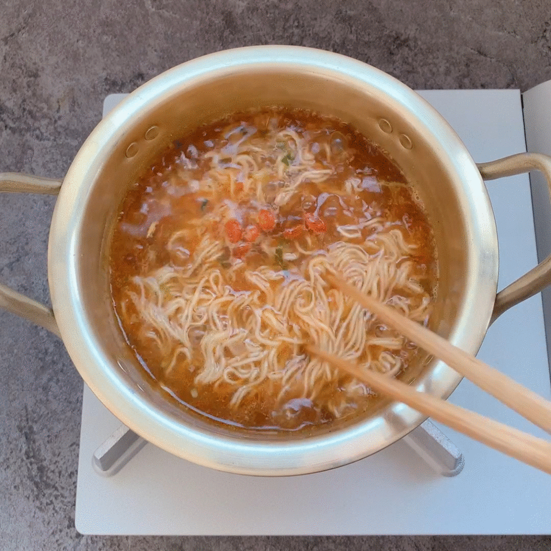 這款的麵條需要開火用鍋子煮喔!所以用泡的是泡不出來的
