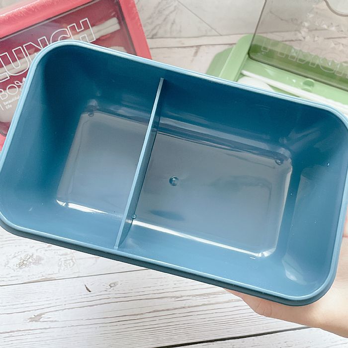 飯盒的蓋子設有餐具收納槽,放置穩固,節省空間。